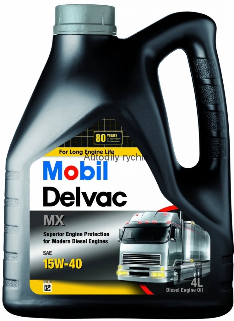 Motorový olej Mobil Delvac MX 15W-40 4L je vysoce výkonný olej pro vznětové motory, který zajišťuje vynikající mazání moderním motorum pracujícím v náročných aplikacích, a který podporuje jejich delší životnost. Díky tomu tento produkt splňuje nebo převyšuje technické podmínky kladené prakticky všemi významnými evropskými a americkými výrobci motoru. Velmi vysoký výkon tohoto produktu byl v praxi prokázán v široké škále průmyslových odvětví. Zdokonalené chemické složení tohoto produktu zajišťuje mimořádný výkon jak u náročných, moderních, nízkoemisních motoru, tak i u starších motoru, pracujících s palivem s nízkým či vysokým obsahem síry. Kombinuje směs vysoce kvalitních základových oleju s progresivním komplexem aditiv tak, aby poskytoval vynikající kontrolu zvyšování viskozity oleje vlivem nánosu sazí a vysokých teplot. Dále poskytuje mimořádnou odolnost proti oxidaci, korozi a usazování nánosu laku při vysokých teplotách.