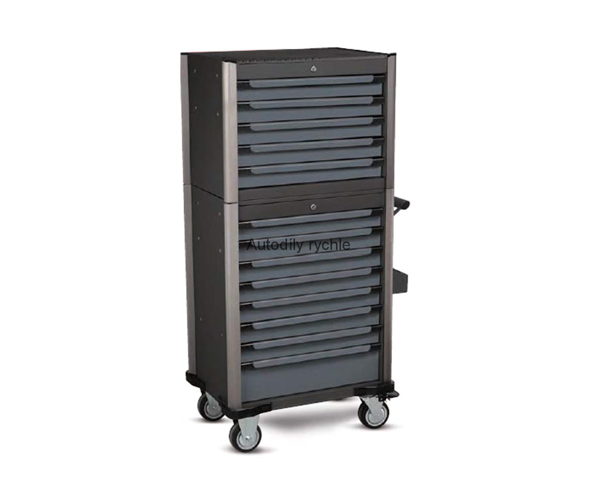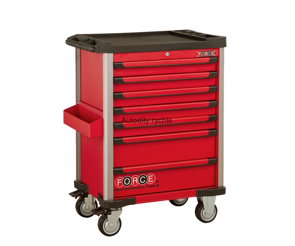 Nástrojové vozíky od FORCE jsou masivní konstrukce z vysoce kvalitního ocelového plechu potaženého práškovým lakem. Horní části vozíků jsou potaženy zesíleným plastovým krytem a zásuvky jsou namontovány na vedení ložisek. Všechny modely mají centrální zámek blokující všechny zásuvky a také dvě pevná kola a dvě otočná kola s brzdami. Níže jsou k dispozici modely nástrojových vozíků v různých konfiguracích nástrojů.